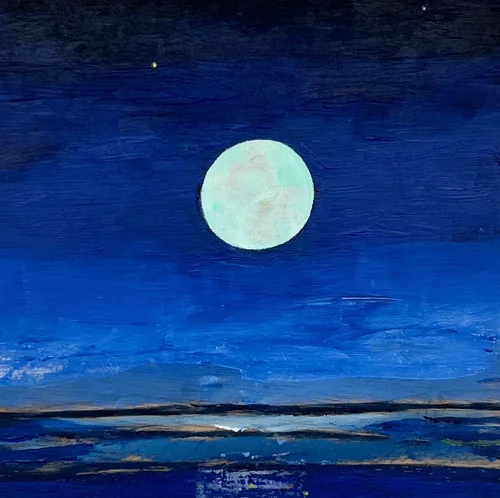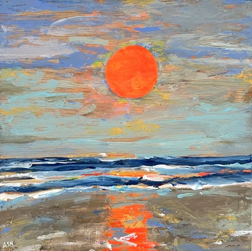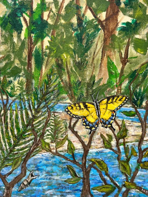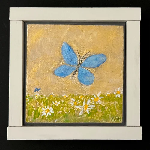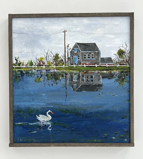 Acrylic painting on wood panel with a handmade frame.