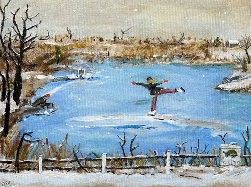 Acrylic painting on wood with a handmade frame.