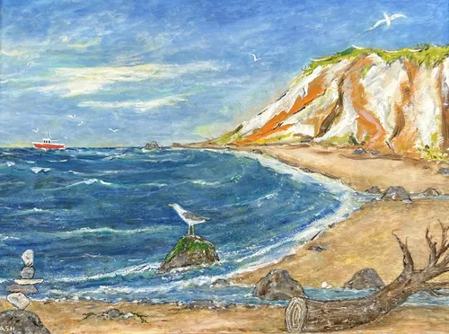 Oak BluffsAcrylic on wood with a handmade frame.
